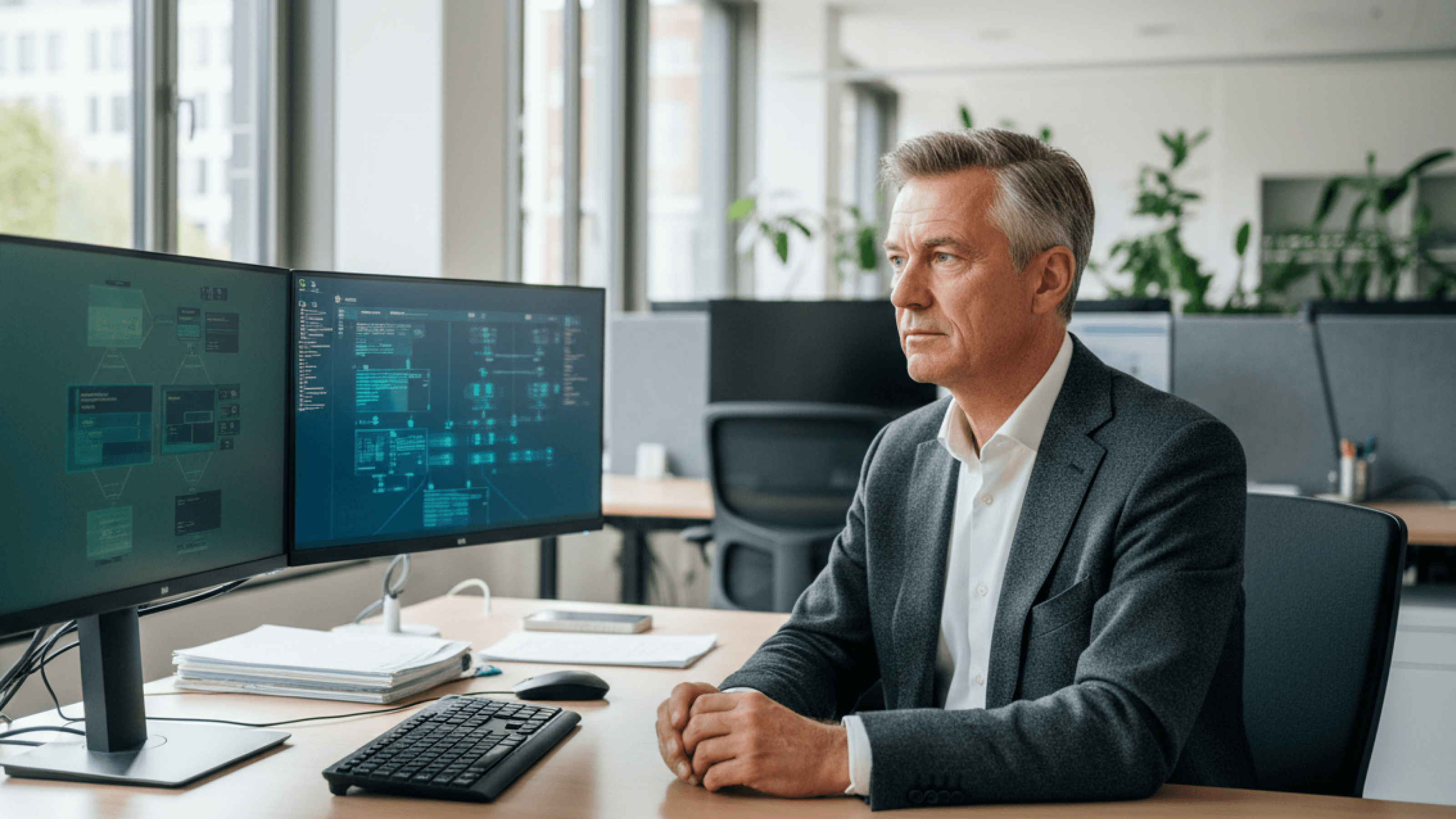 Eric implements. He delivers tenant configurations, scripts, security policies, and technical documentation. Every step is reproducible and transparent — no black box, no dependency on individuals. Eric gives your team a detailed guide for every task.